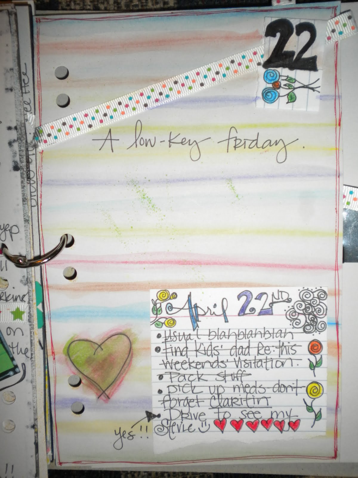 First we have the 29th which spread on two pages because I had stamped this reaaalllly cool thing with paint, chopped it up and wanted it in there...so there it is LOL